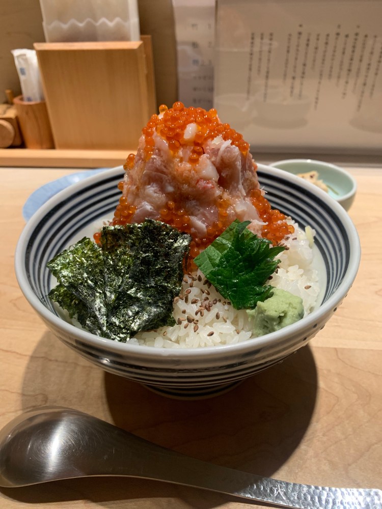 ※お店の注意書きには、鯛は、丼のシメで鯛茶漬けをする際に乗せるので2切れは取っておいたほうがいいと書いてあるので全部食べないようにご注意※