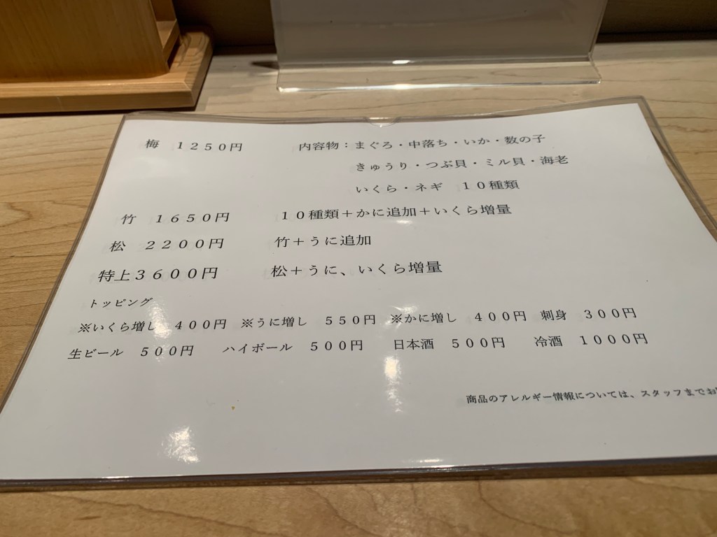 正直、梅でも充分美味しいですが、写真写りがいいのは竹、松、特上の3種類!梅は、いくらが少ないので少し見た目のインパクトはかけますが、美味しさは「梅」でも最高です!