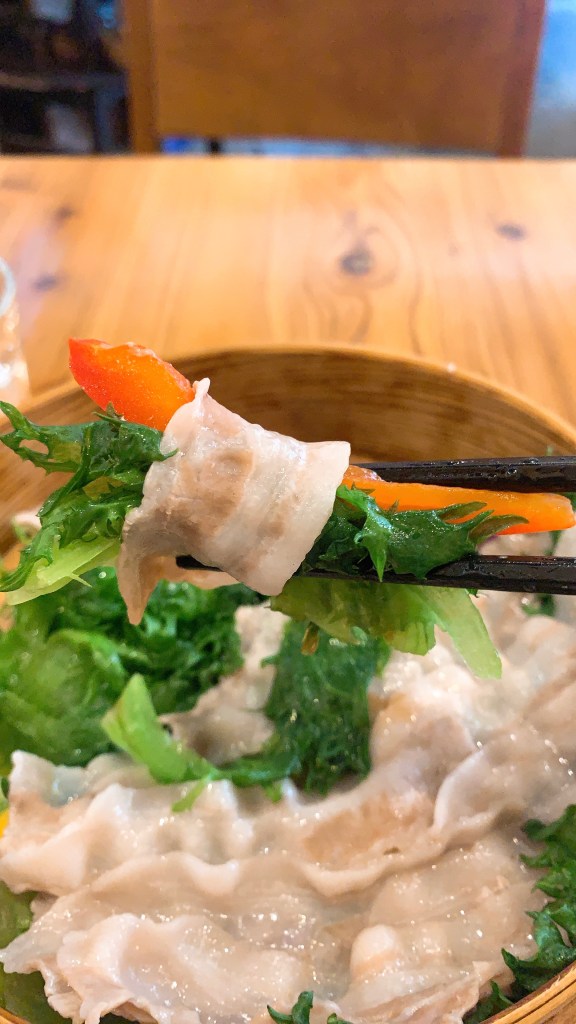 「豚肉せいろ蒸し」は、しゃぶしゃぶをもっとヘルシーにして野菜のうまみを逃さない新感覚の野菜に出会える一品でした!