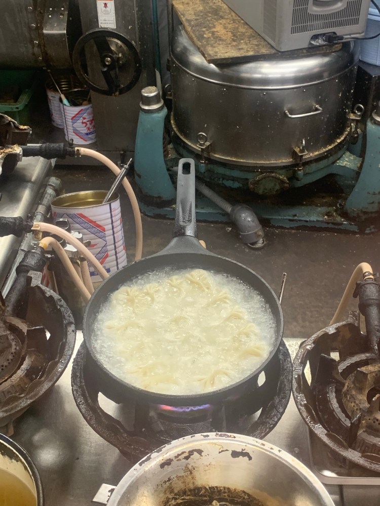 一般的な焼餃子とは違い、皮は分厚く、焼くだけでは火が通らないほどにモチモチとした皮が特徴的。蒸し焼きにしてから、たくさんの油を注ぐことで、揚餃子にも似た、見た目と食感の餃子。本店の野田市では、50年以上愛されるソウルフードです(●´ϖ`●)