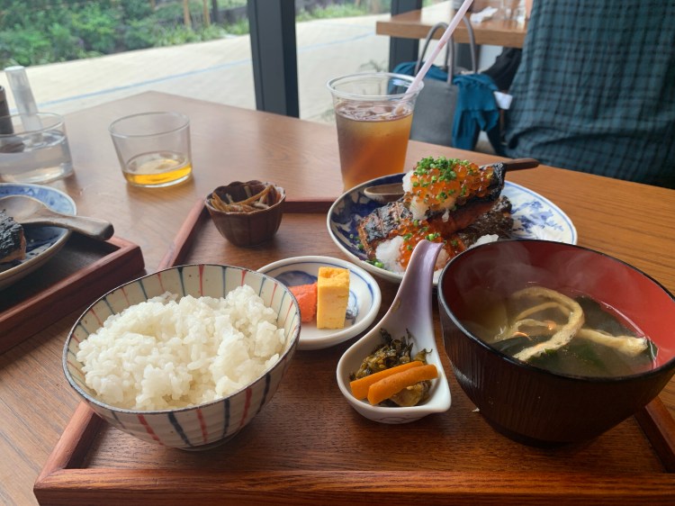 「ごはん」「銀鮭いくら」「味噌汁」「小鉢(きんぴらごぼう)」「お新香(辛子高菜、人参)」「明太子、卵焼き」これだけお盆にのってききたので1500円は、むしろコスパいい!!!