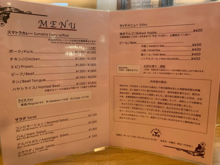先代店主が、【明治の末、広く東南アジアに遊び知見を広めた伊藤友治郎氏】より作り方を教わりアレンジしたものが共栄堂のスマトラカレーとなります!