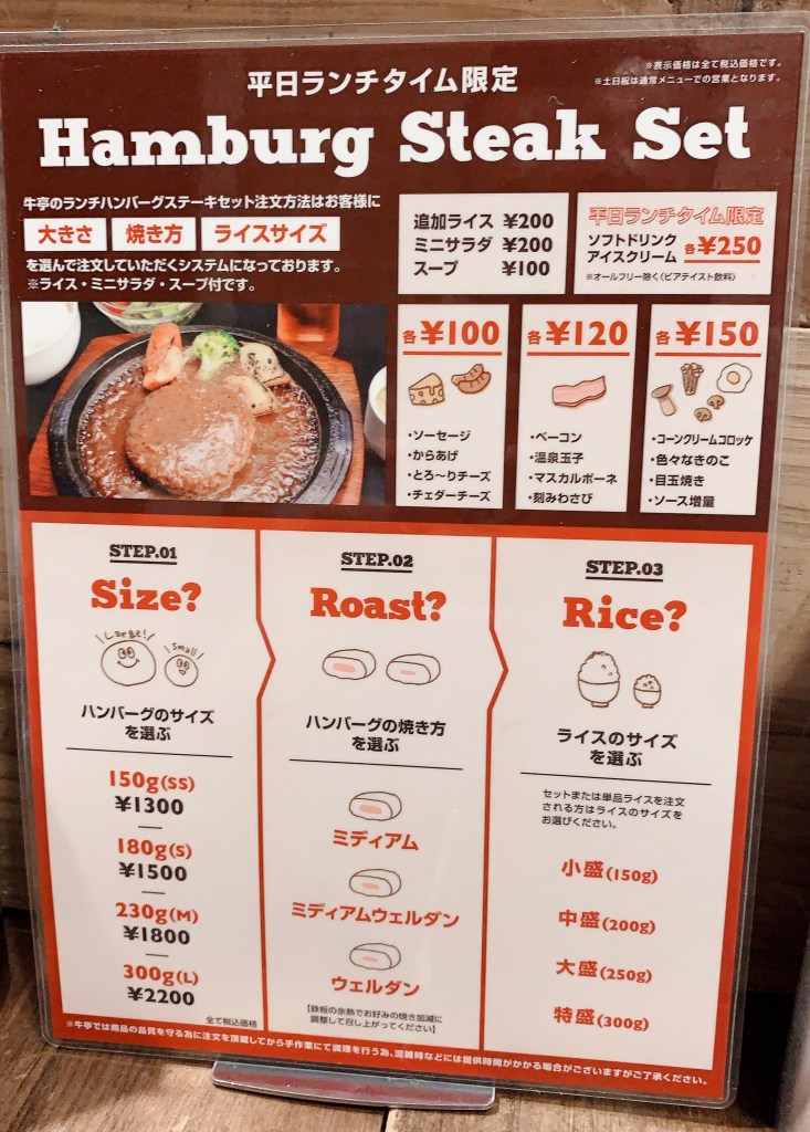ステーキセットは、平日ランチ限定で【150g】のセットで1,300円から食べれるコスパ最強のハンバーグ屋さんとなっています!