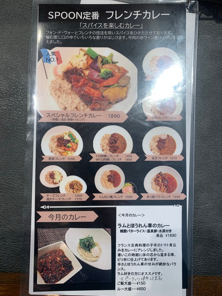 お店自慢の《フレンチカレー》は、バターと小麦粉を極力使用していないそうで、低カロリーのカレーが食べれるのでダイエット中の人でも安心して食べれるカレーが自慢です!